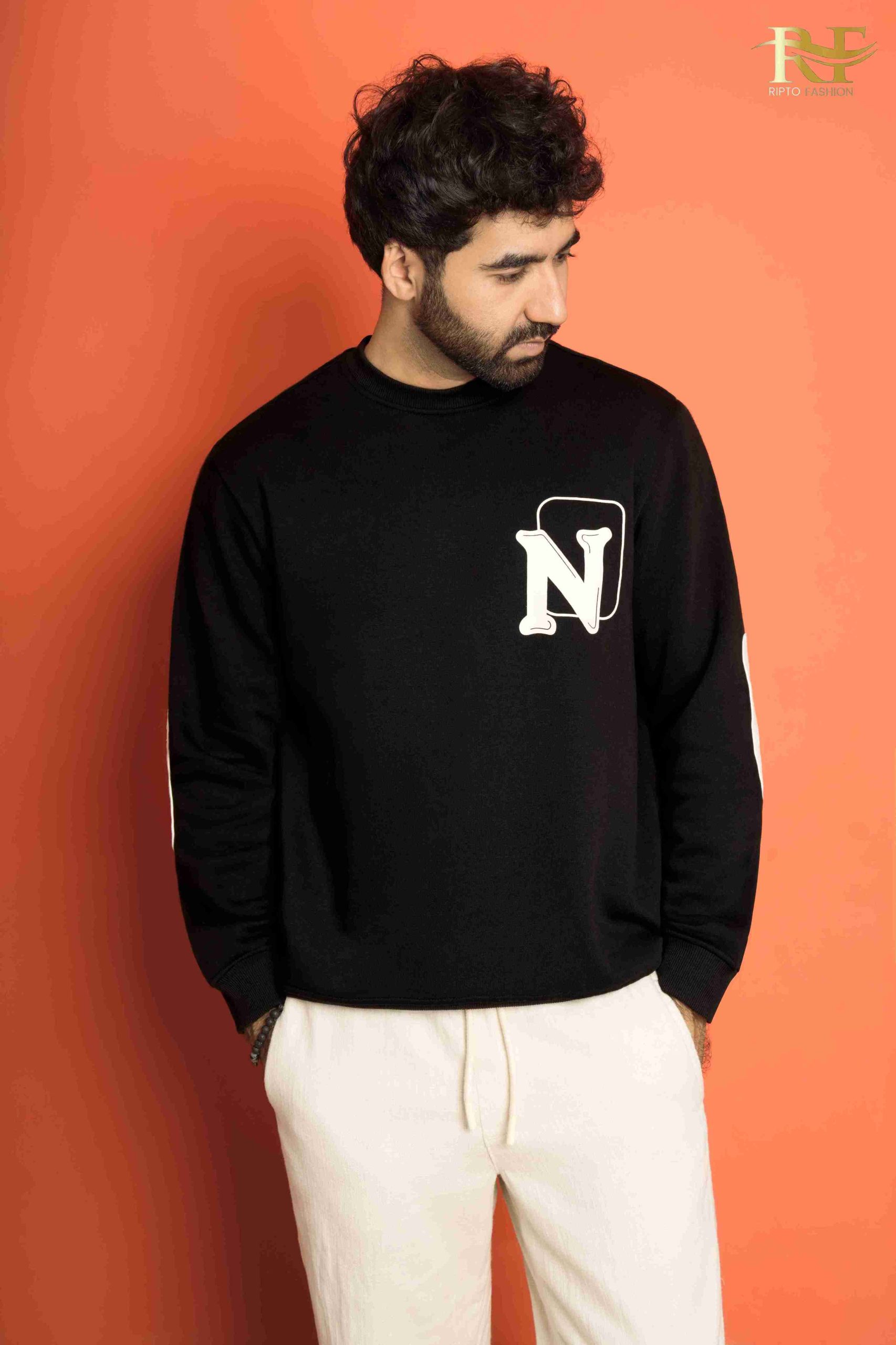 Top selling N-Design Sweatshirt for You. Premium N design sweatshirt for men Color- BLACK